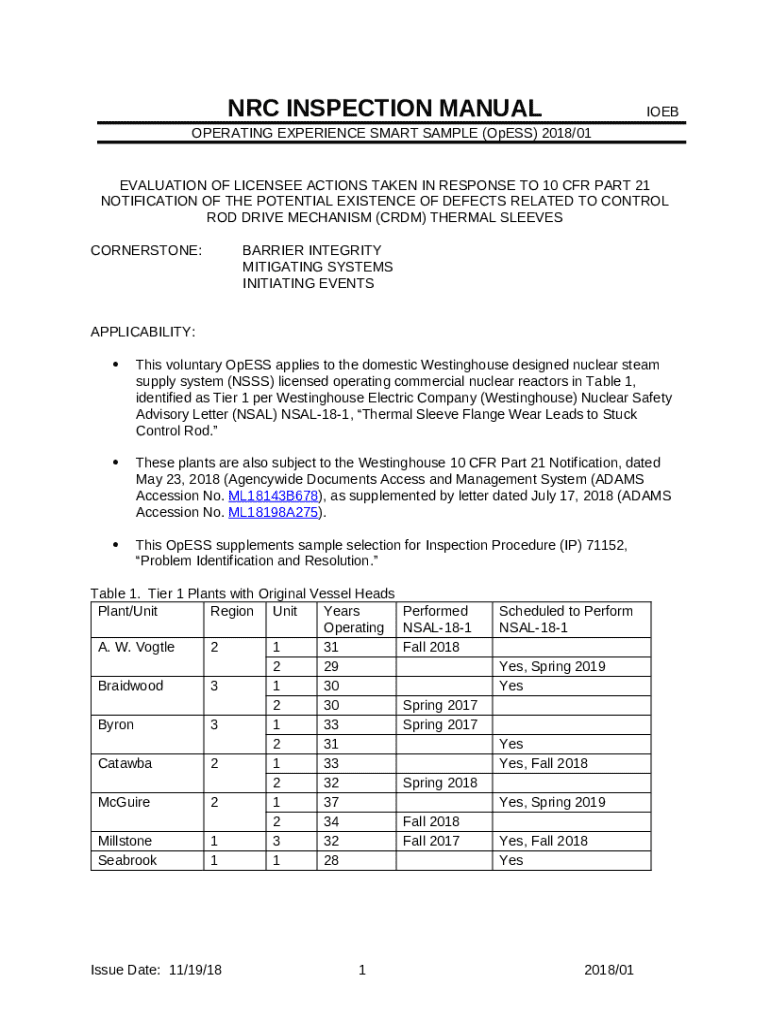 Utilizing the NRC inspection manual IOEB form offers a variety of benefits for organizations and teams engaged in regulatory compliance activities. One primary advantage is the streamlining of inspection processes, which allows for more efficient evaluations and reduces the potential for oversight. By standardizing the information collected, teams can ensure they cover all necessary areas during inspections.