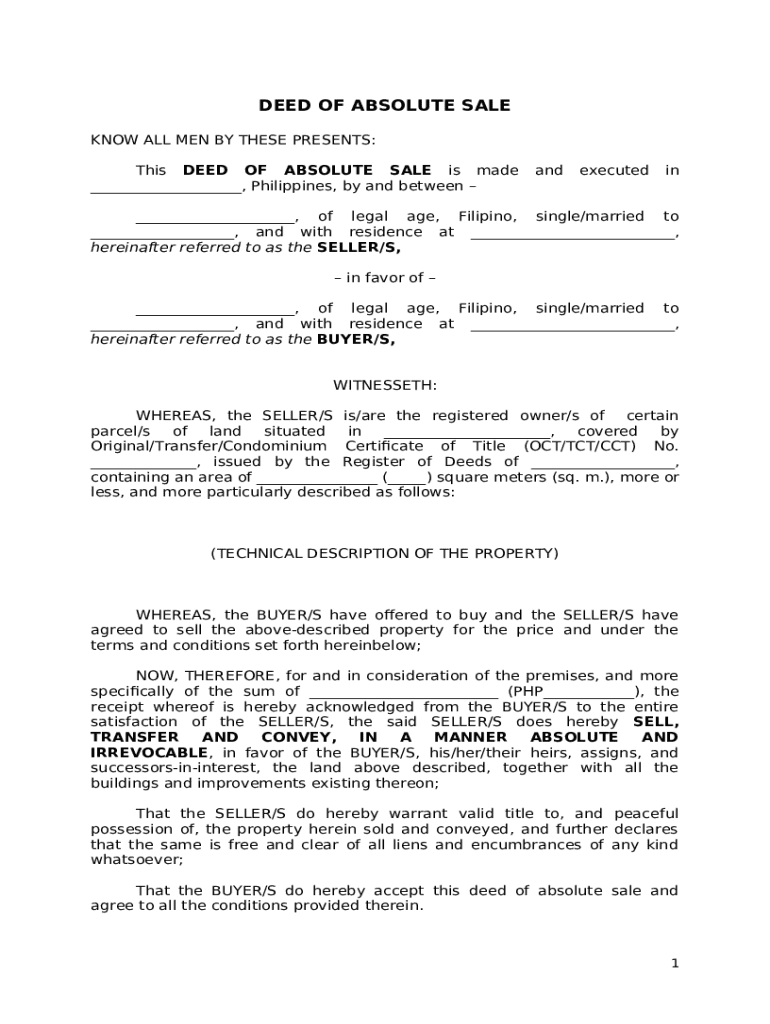 To facilitate the process, having a sample template for the deed of absolute sale can be incredibly useful. This allows for easy adaptation to your specific transaction needs.