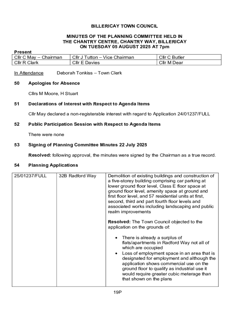 Get the free Billericay Town Council Planning Committee Minutes - billericaytowncouncil gov