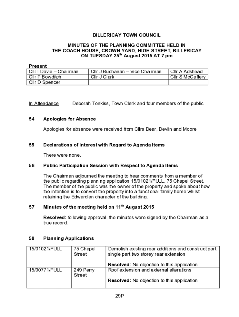 Get the free Billericay Town Council Planning Committee Minutes