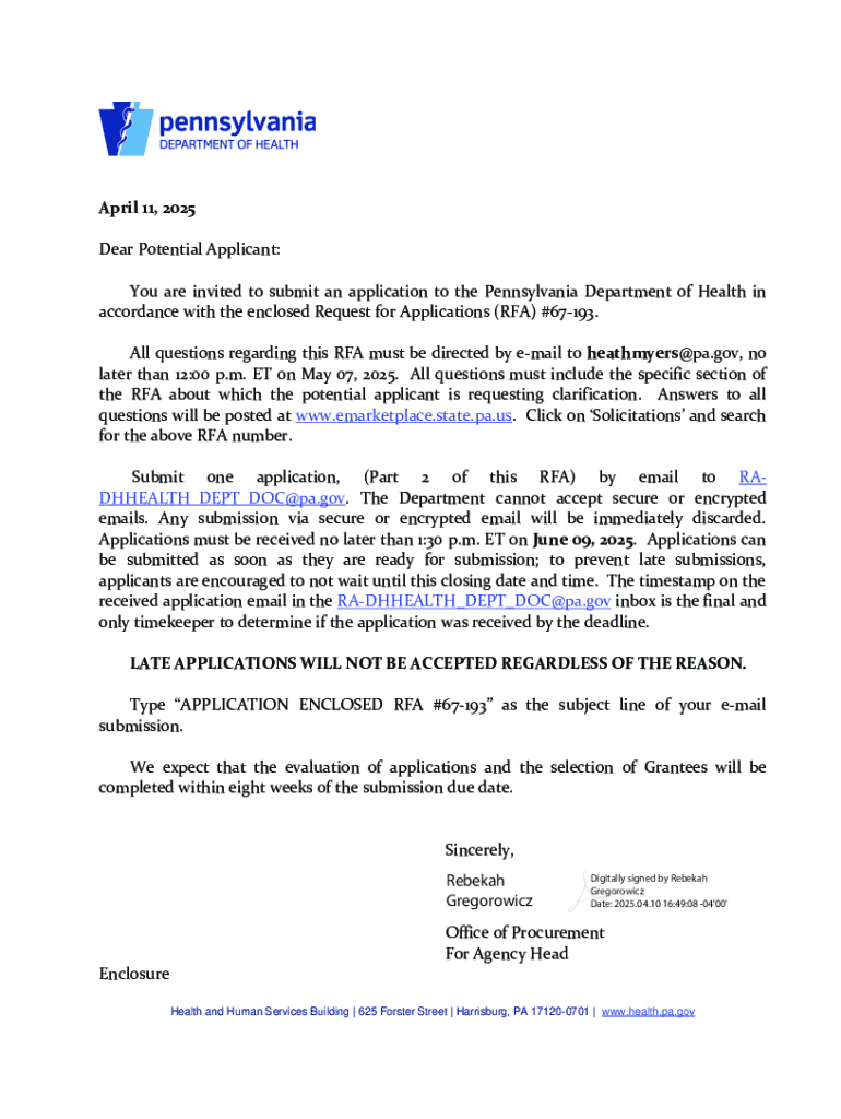 Get the free Request for Application