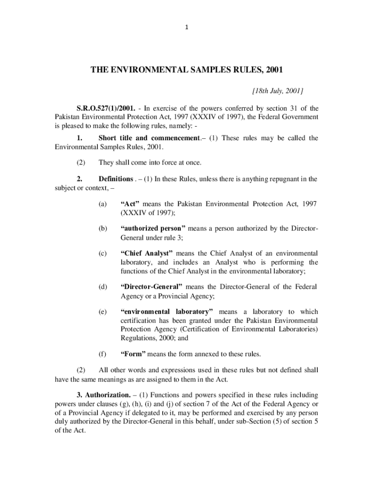 Get the free Environmental Samples Rules, 2001 - kpcode kp gov