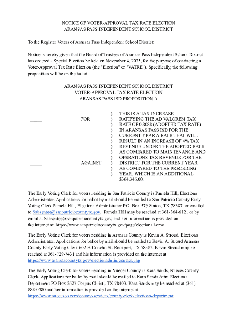Get the free Notice of Voter-approval Tax Rate Election