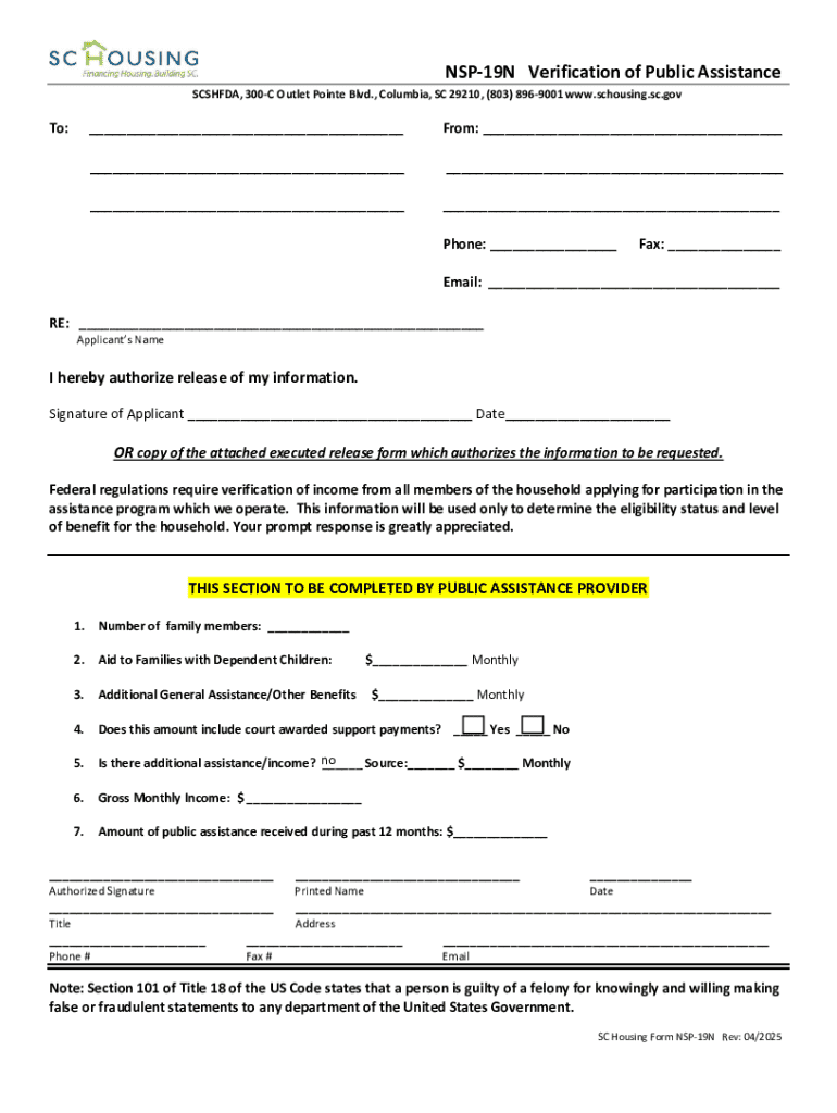 Get the free Nsp-19n Verification of Public Assistance