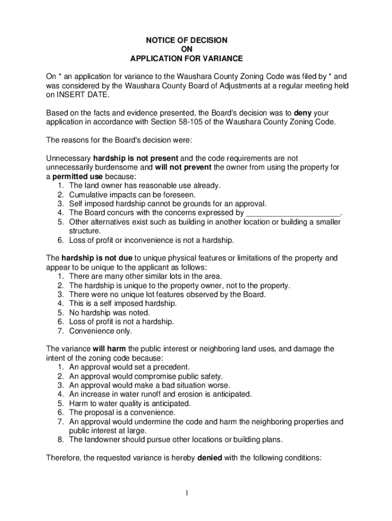 Get the free Notice of Decision on Application for Variance