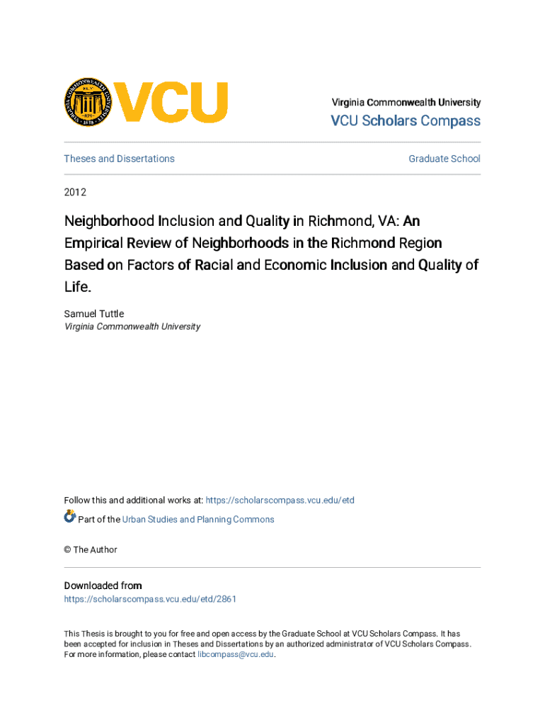 Get the free Neighborhood Inclusion and Quality in Richmond, Va: an Empirical Review of Neighborh...
