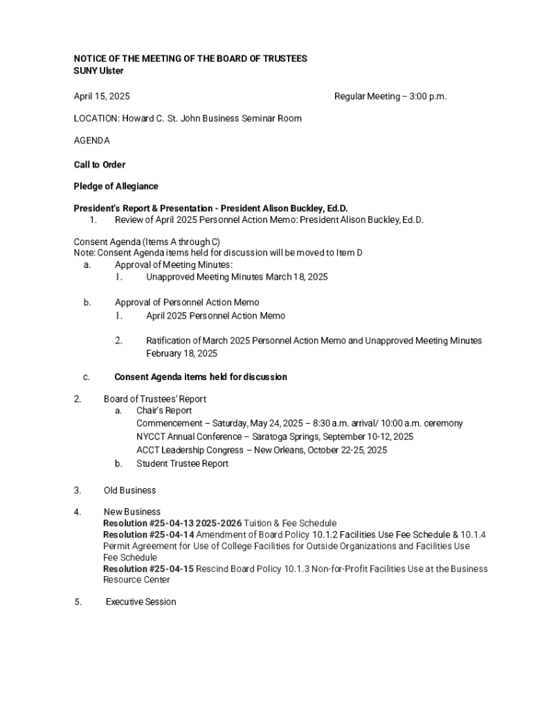 Get the free Notice of the Meeting of the Board of Trustees