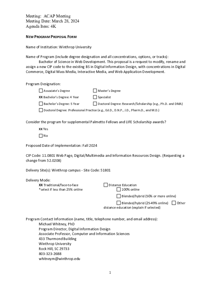 Get the free New Program Proposal Form - che sc