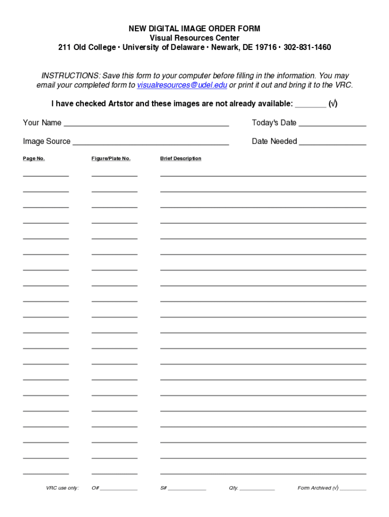 A digital image order form is an essential tool for individuals and teams looking to streamline the process of ordering images online. This form facilitates the collection of specific image requests while ensuring a clear, efficient workflow for users. The primary purpose of the new digital image order form is to allow customers to purchase and customize images easily, ensuring a smooth experience from selection to order fulfillment.