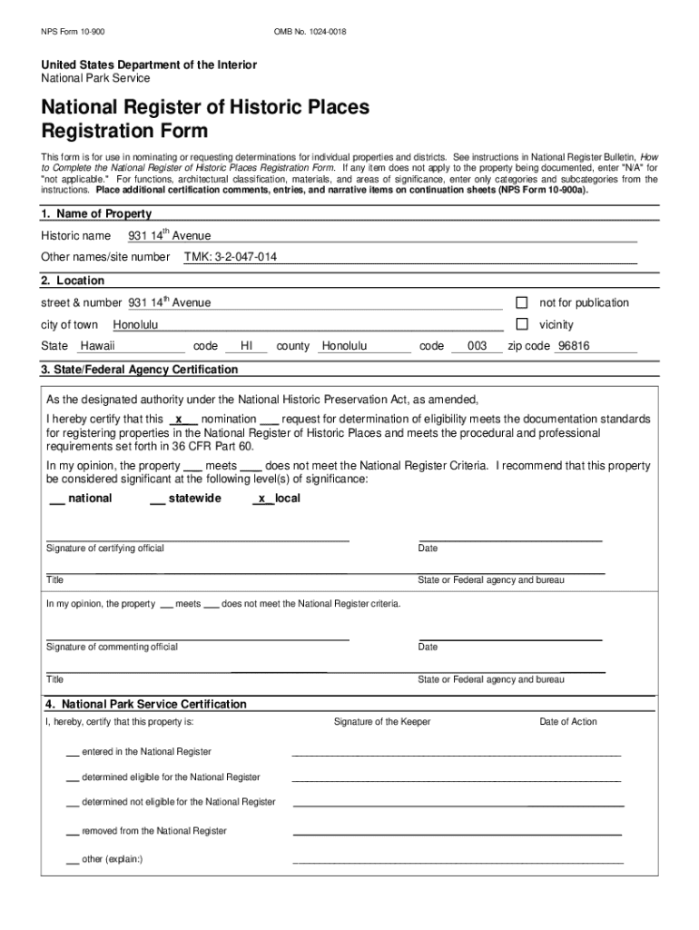 Understanding the NPS Form 10-900 involves familiarizing oneself with its major sections. Key components include identifying information about the property, a detailed property description, and extensive discussions on its historical significance and legal implications. Below are some essential terms and definitions related to the form: