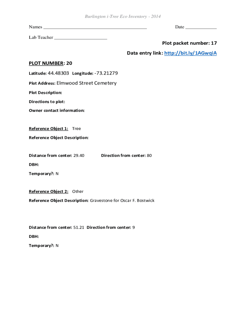 The Burlington i-Tree Eco Inventory Form is a critical tool designed for assessing and managing urban trees. It serves to collect detailed information about tree species, health, and location, providing a solid foundation for analyzing urban forestry initiatives. This form is an integral part of the broader i-Tree Eco program, which aims to enhance understanding of the environmental and economic benefits offered by urban forests.