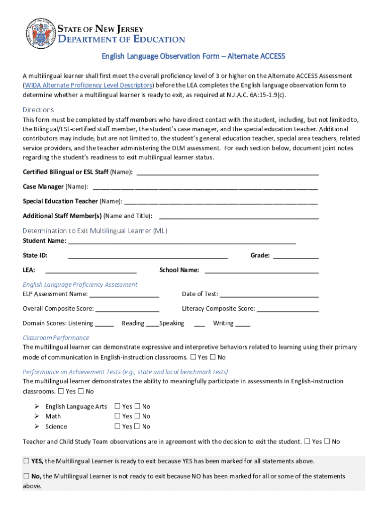 Get the free English Language Observation Form – Alternate Access