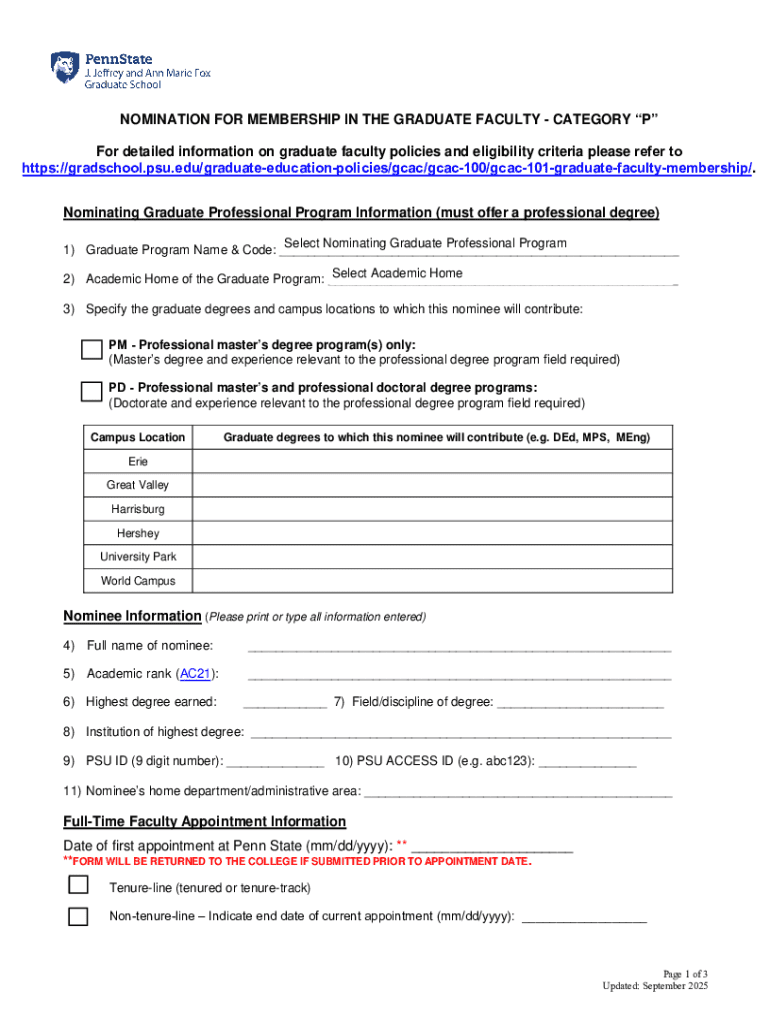 Get the free Nomination for Membership in the Graduate Faculty - Category “p” - gradschool psu