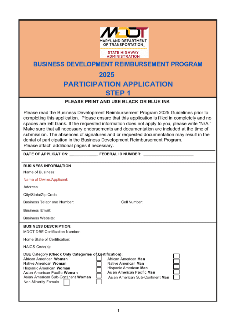 Get the free Business Development Reimbursement Program - roads maryland