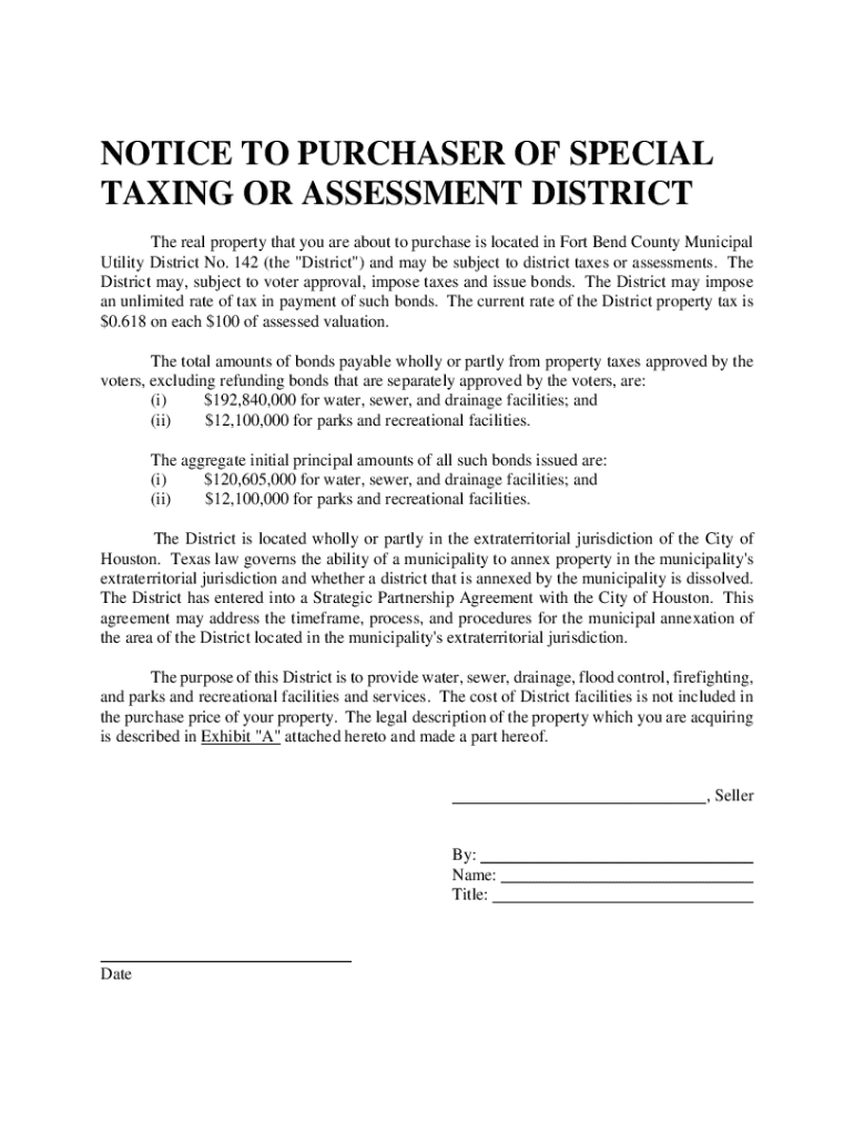Get the free Notice to Purchaser of Special Taxing or Assessment District