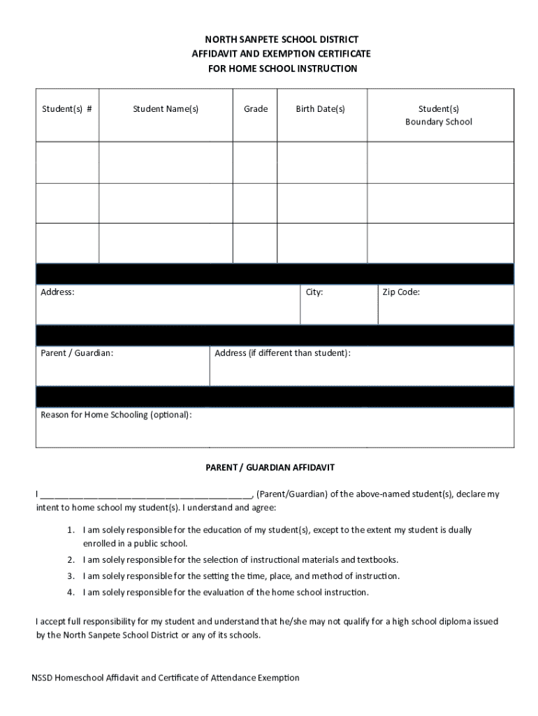 The NSSD homeschool affidavit is a legal document that parents or guardians must complete to formally declare their intention to homeschool their children, complying with state regulations.