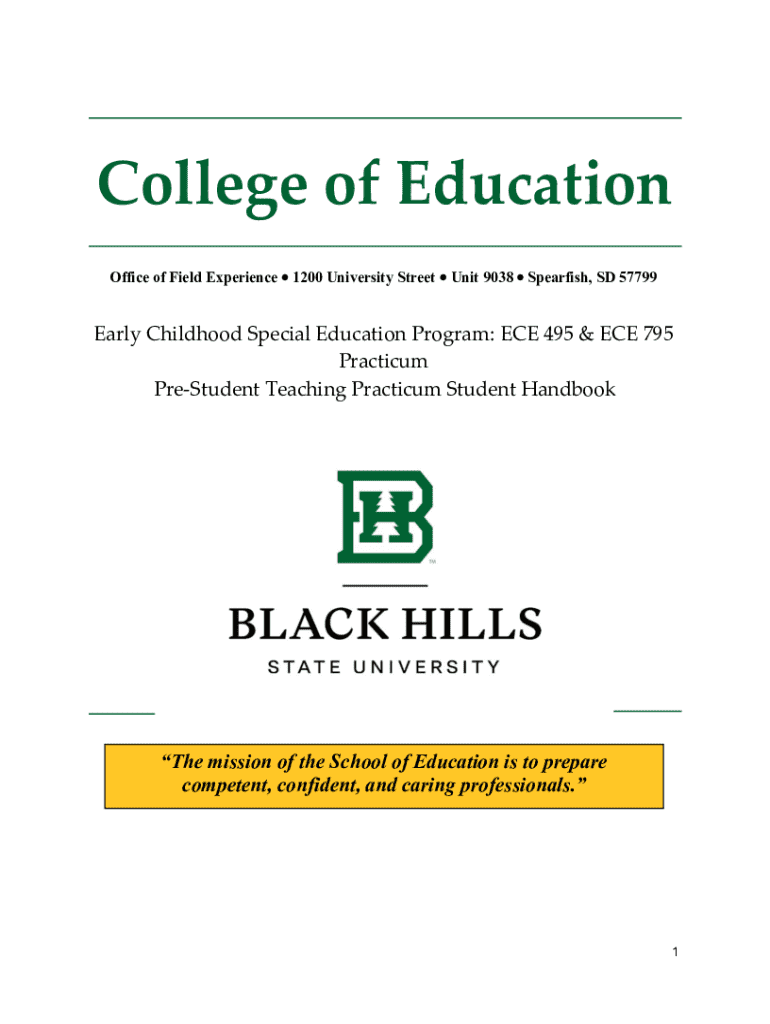 This handbook serves as a comprehensive guide for teacher candidates enrolled in the Early Childhood Special Education Program at Black Hills State University. It outlines the practicum requirements,