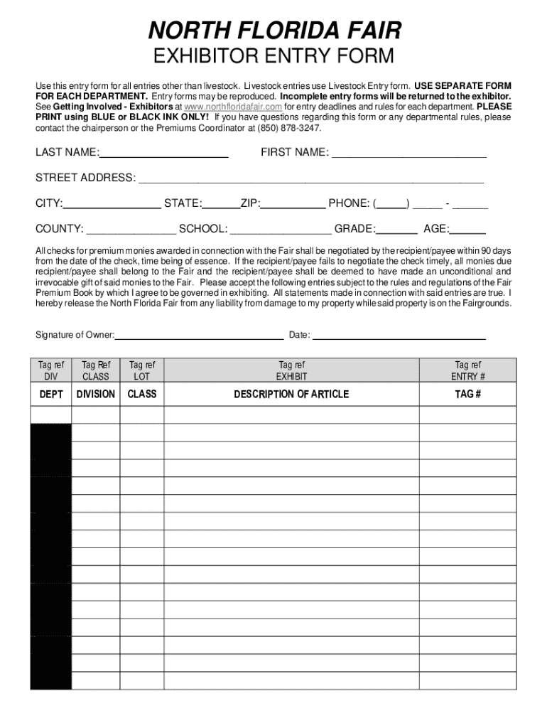 North Florida Fair Exhibitor Form: A Comprehensive Guide