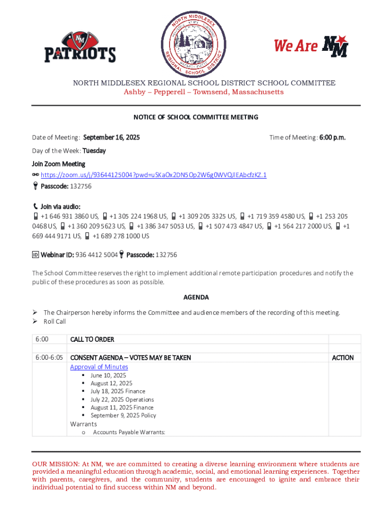 Get the free North Middlesex Regional School Committee, Sending ...