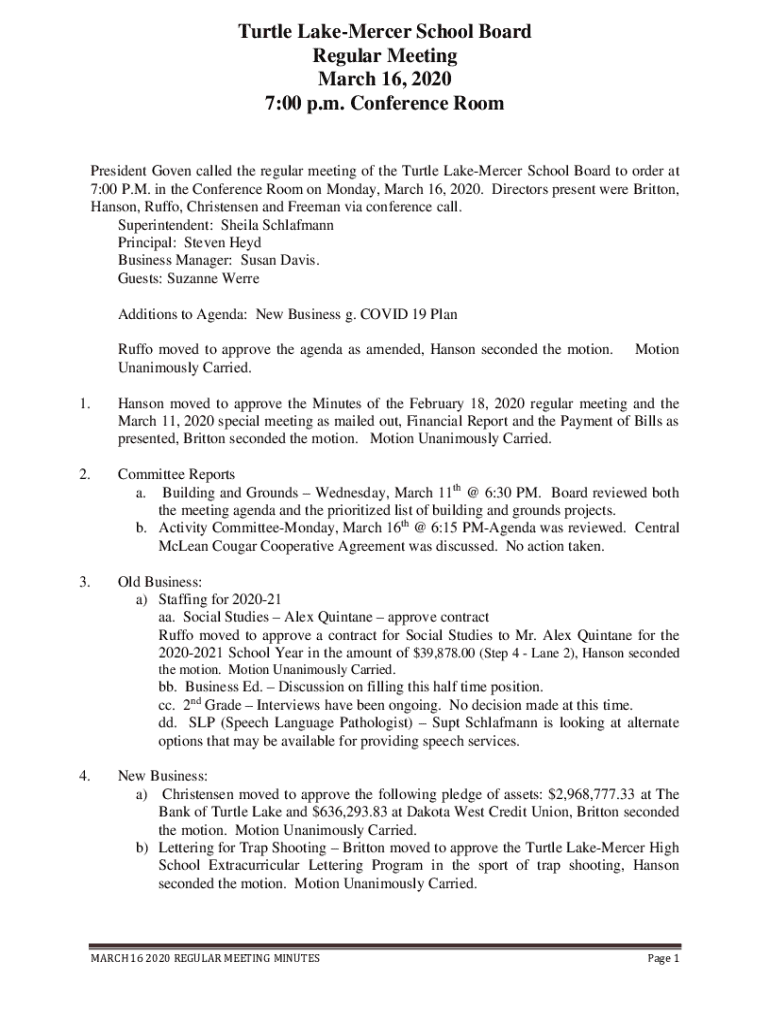 Get the free Turtle Lake-mercer School Board Regular Meeting Minutes