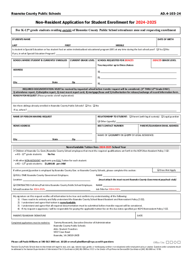Get the free Non-resident Application for Student Enrollment for 2024-2025