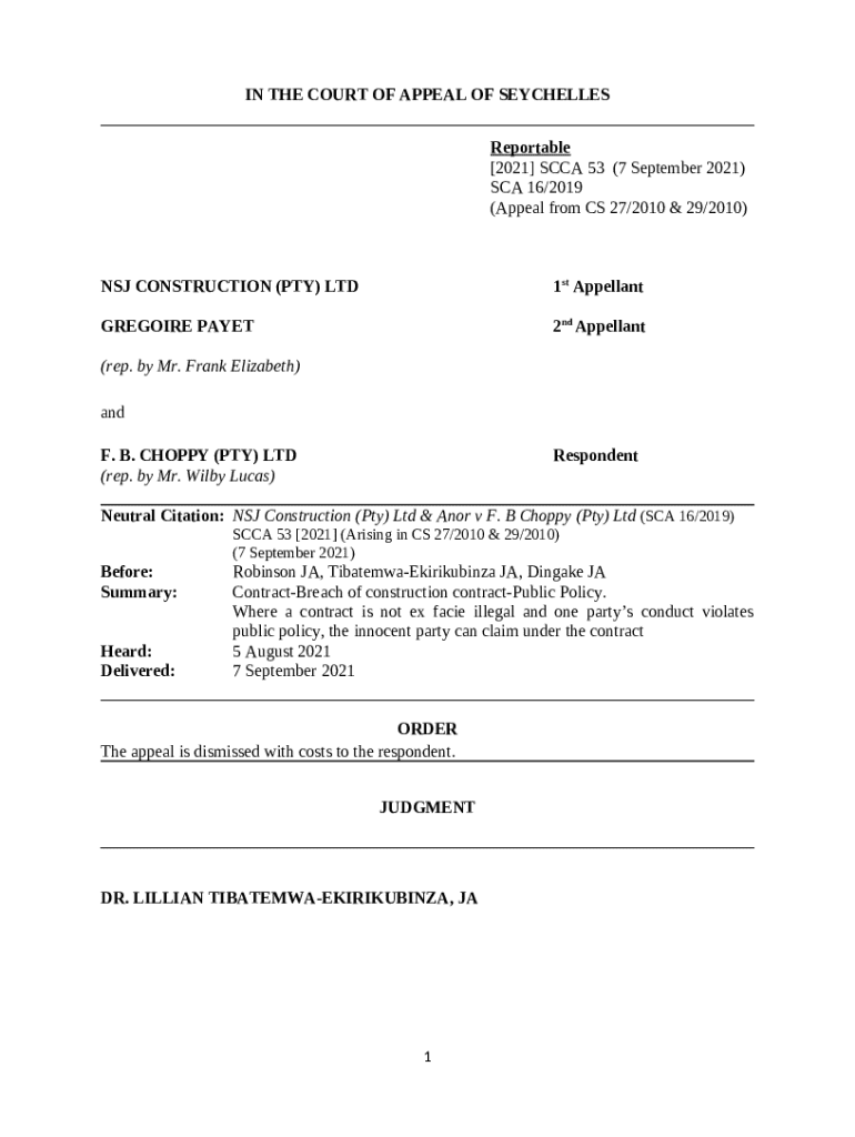 Get the free NSJ Construction (Pty) Ltd and Anor V F.B Choppy ...