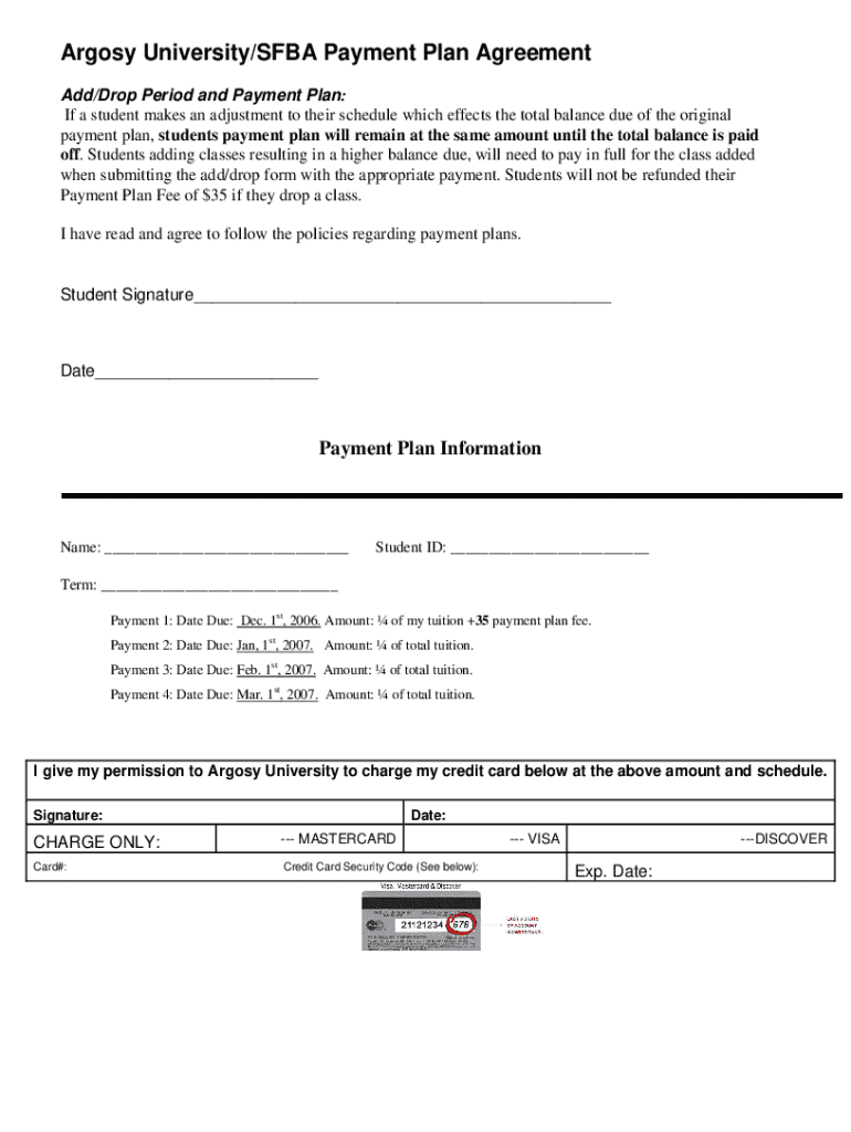 Get the free Argosy University/sfba Payment Plan Agreement