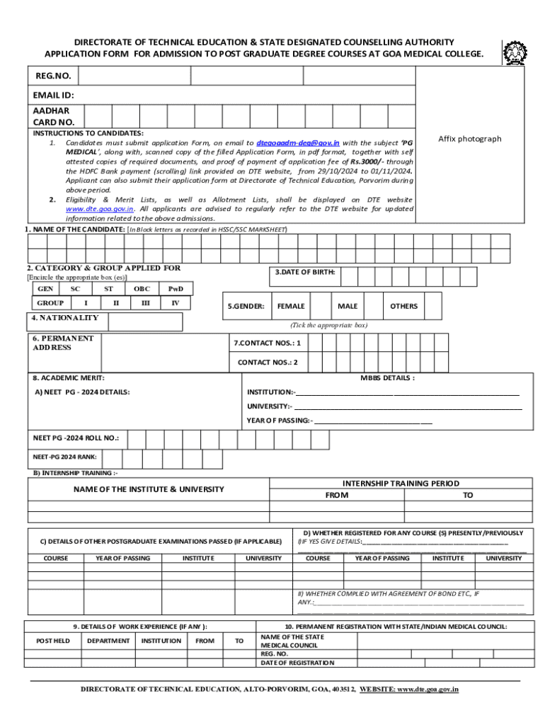 Get the free Application Form for Admission to Post Graduate Degree Courses at Goa Medical College