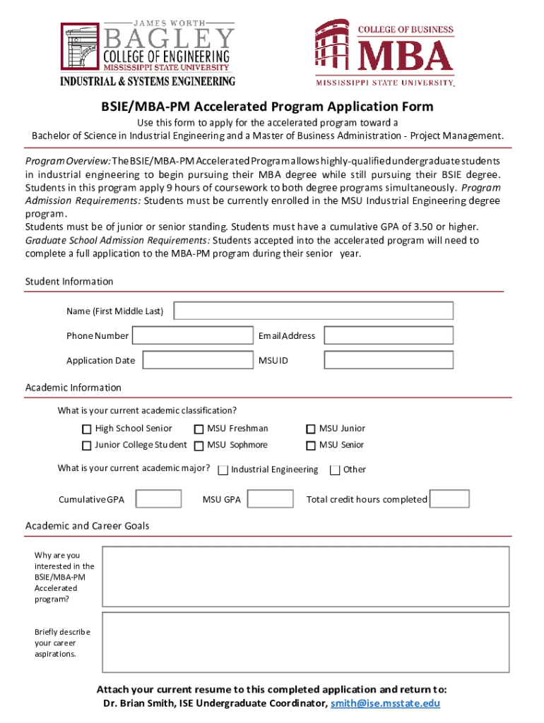 Get the free Bsie/mba-pm Accelerated Program Application Form