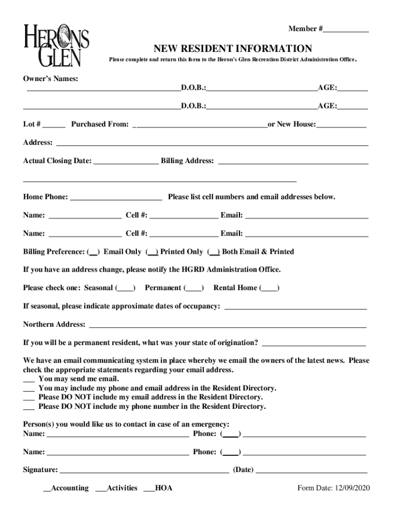 Get the free New Resident Information