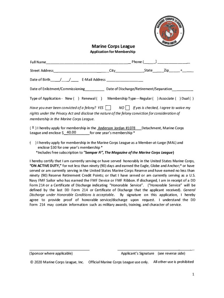 Beyond the primary membership form, various essential documents and forms are relevant for participatory detachments and chapters within the Marine Corps League. These documents can help guide the membership process, ensure compliance, and enable effective community engagement.