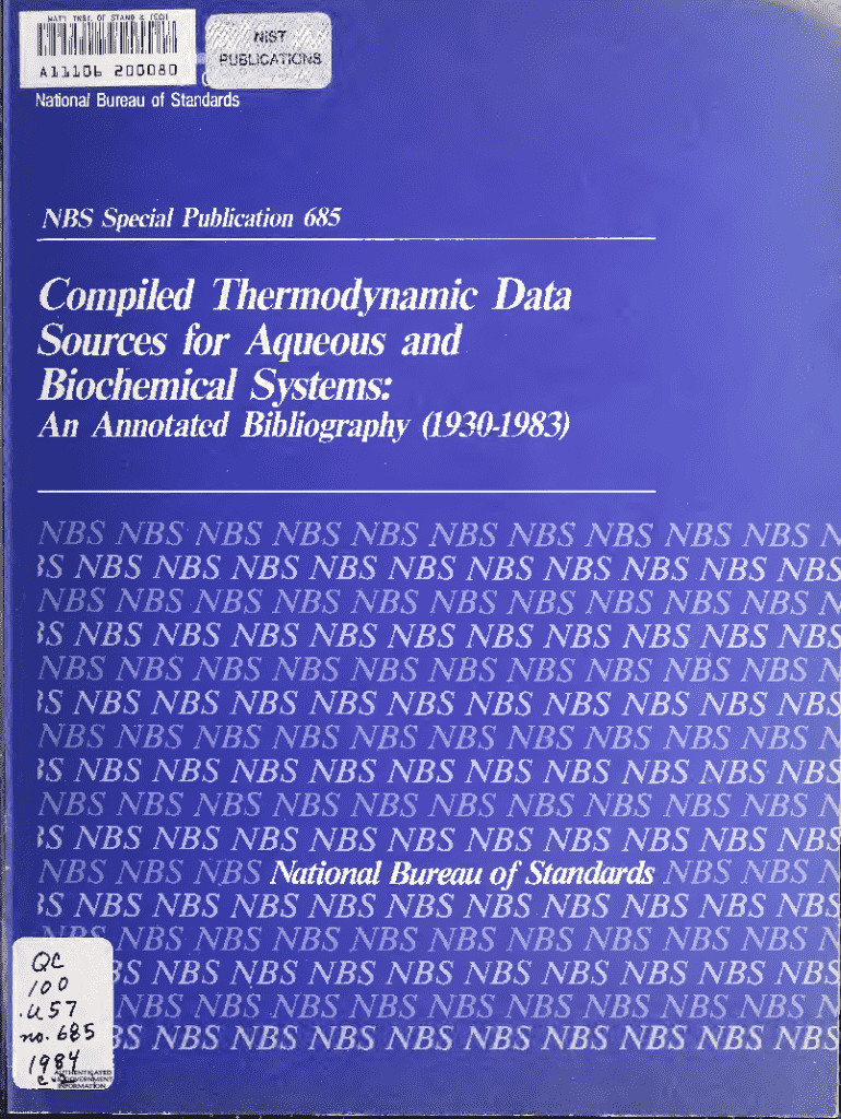 This document is a selected and annotated bibliography of sources of compiled and evaluated chemical thermodynamic data relevant to biochemical and aqueous systems. It includes information on thermodynamic
