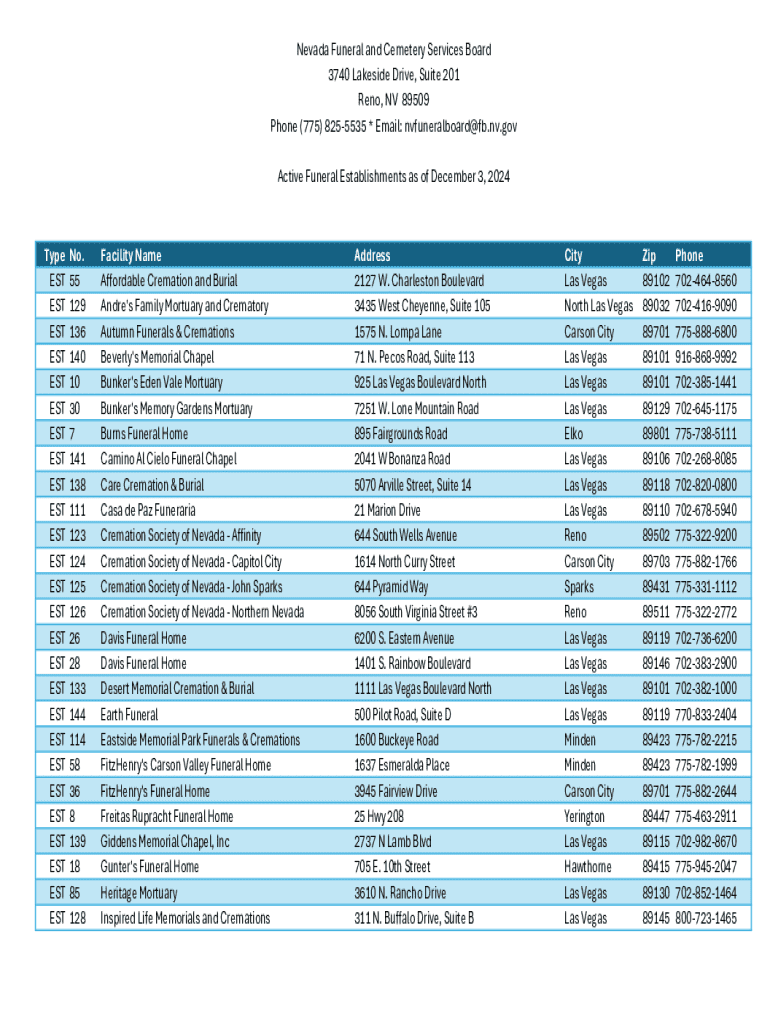 Get the free Nevada Funeral and Cemetery Services Board