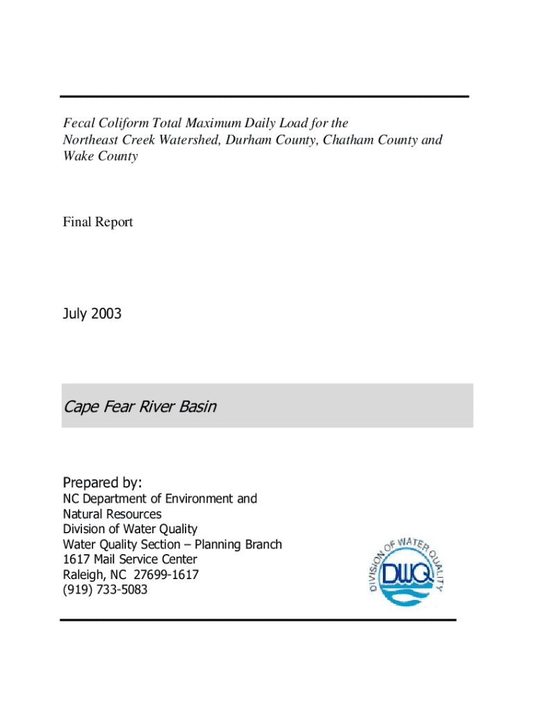 Get the free Northeast Creek Fecal Coliform Tmdl