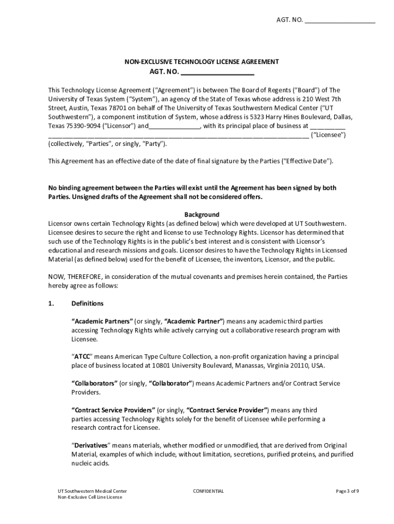 Get the free Non-exclusive Technology License Agreement