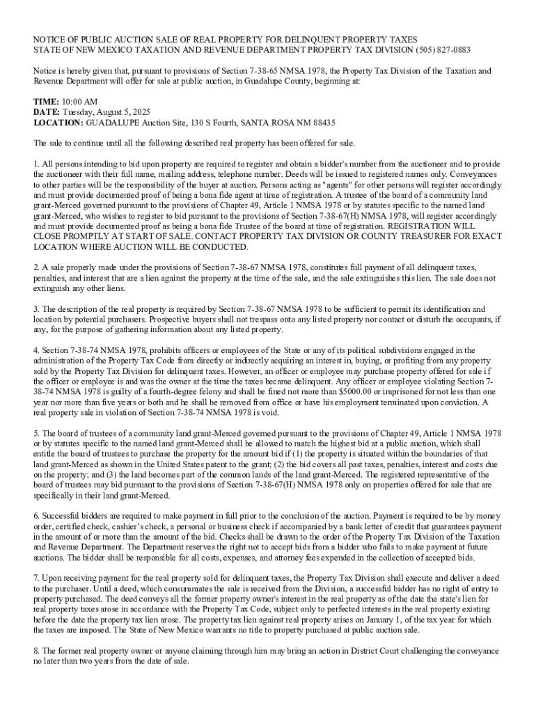 Get the free Notice of Public Auction Sale of Real Property for Delinquent Property Taxes