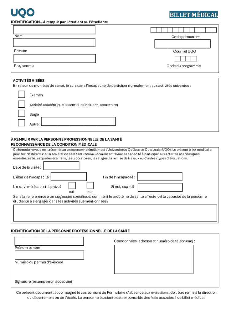 Comment remplir billet médical?
