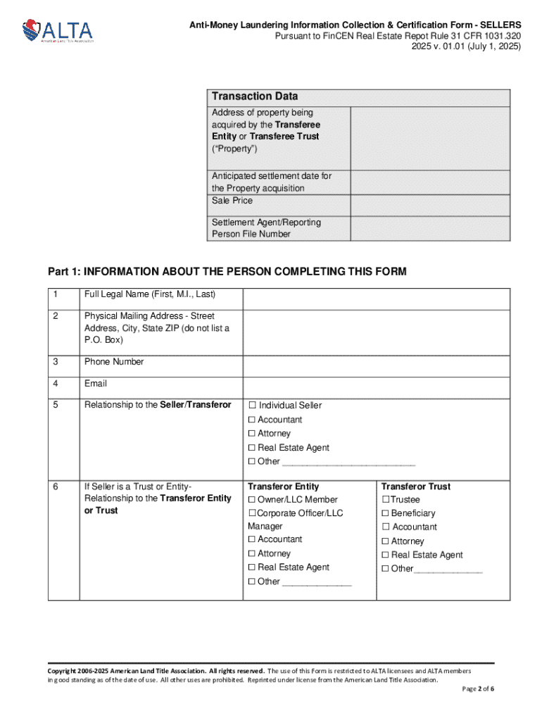 Get the free Anti-money Laundering Information Collection & Certification Form - Sellers