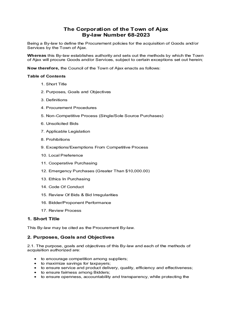 By-law Number 68-2023 consists of several key sections that cover varied aspects of municipal governance. Each section plays a critical role in establishing rules and procedures that local government must adhere to. These sections include procedural overview, appointed committees and boards, financial provisions, and regulations affecting municipal residents.