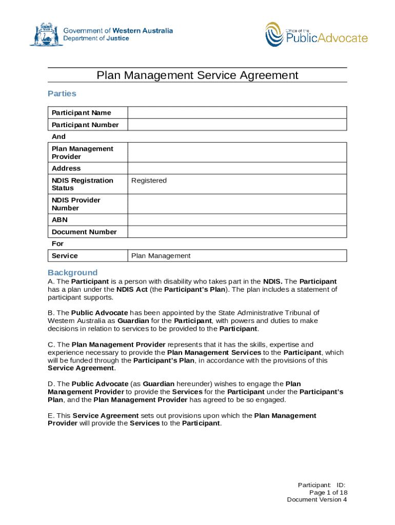 Utilizing a service agreement ensures compliance with legal requirements and mitigates the risk of misunderstandings between parties. This form typically includes important terminologies such as 'service agreement,' which refers to the contractual framework that dictates the scope of the services provided; 'plan management,' which indicates the oversight and administration of these services; as well as 'responsibilities and obligations' that clarify what is expected from each party throughout the agreement's duration.