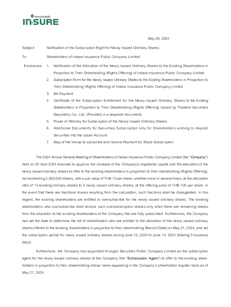 Get the free Notification of the Subscription Right for Newly Issued ...