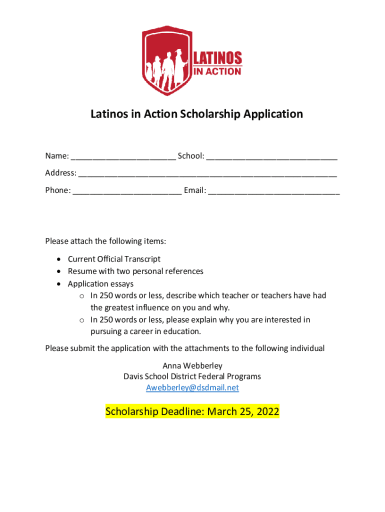 The Latinos in Action scholarship form is more than just a document; it embodies opportunities for aspiring leaders in the Latino community. By engaging in this application process, students not only seek educational assistance but also become part of a larger movement aimed at fostering community empowerment and leadership development. As potential applicants, staying connected with these efforts is key.