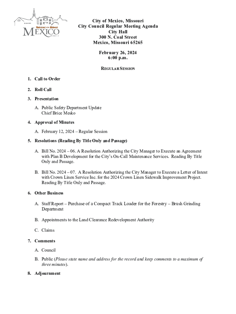 Comprehensive Guide to the City Council Regular Meeting Form