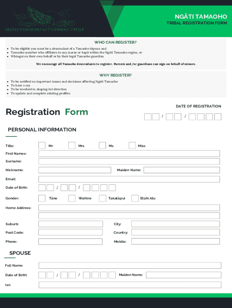 Get the free NgĀti Tamaoho Tribal Registration Form