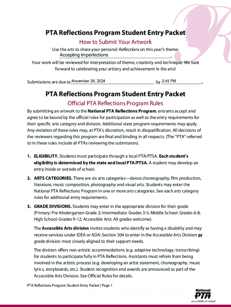Get the free Pta Reflections Program Student Entry Packet