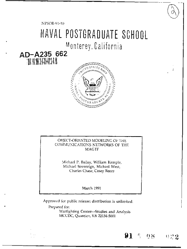 This report discusses the modeling of the Marine AirGround Task Force (MAGTF) communications network using objectoriented simulation methods, focusing on workload modeling and performance measures