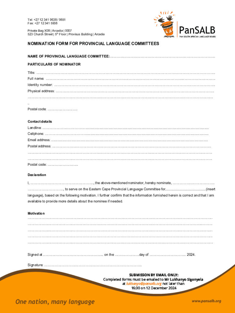 Get the free Nomination Form for Provincial Language Committees