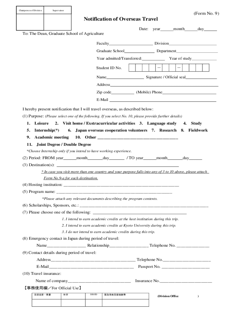 Get the free Notification of Overseas Travel