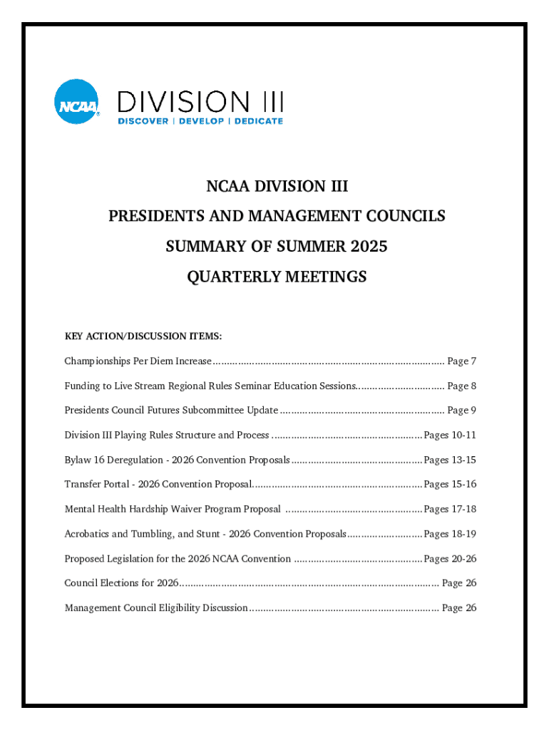 Get the free Ncaa Division Iii Presidents and Management Councils Summary