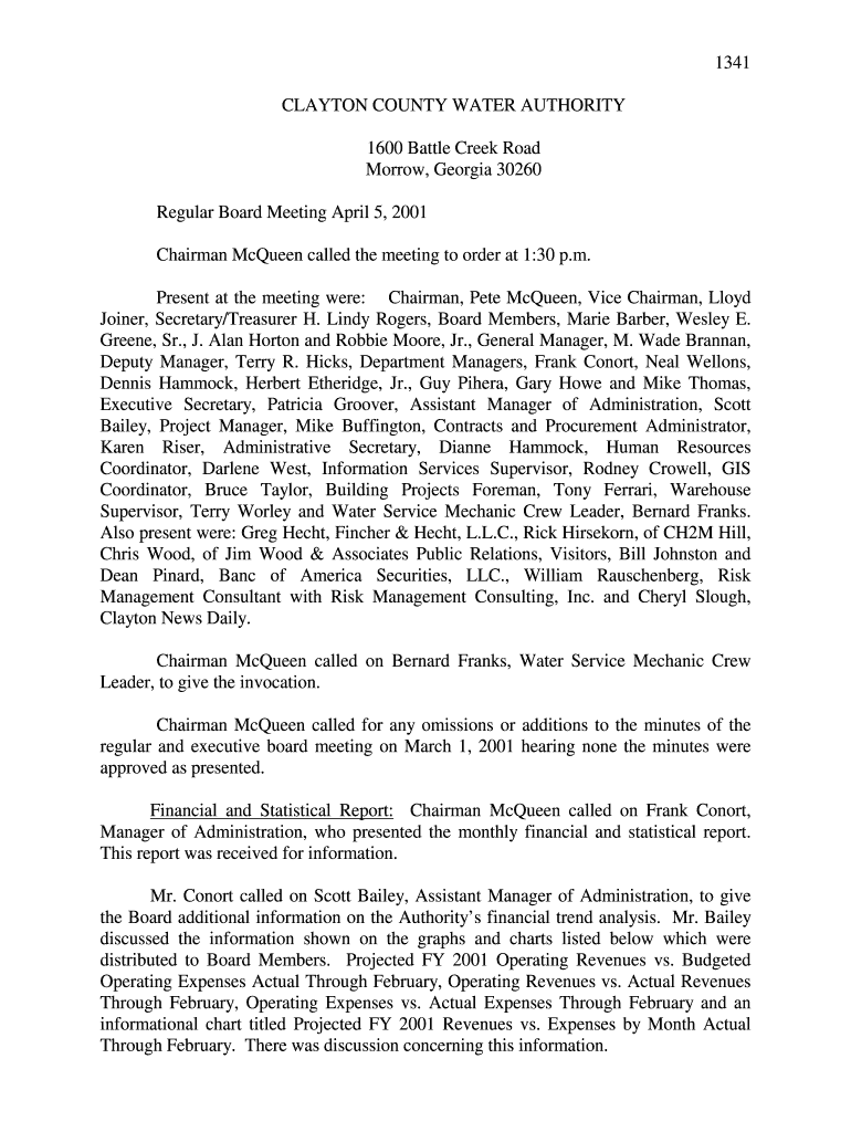 Regular Board Meeting April 5, 2001,